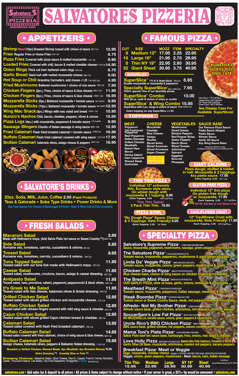 Welcome to Salvatore's Old Fashioned Pizzeria, a hidden gem nestled at 6200 County Line Rd in Ontario, NY. Known for its warm atmosphere and friendly service, this pizzeria has quickly built a reputation that goes beyond just mouthwatering pizza.